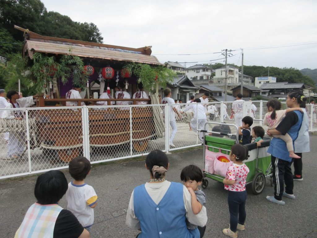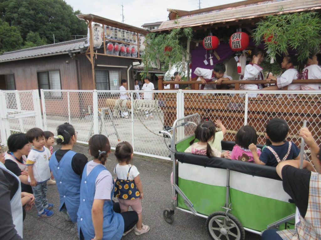 10月1112日は地域のお祭り【鴻八幡宮例大祭】がありました。前日の11日(土)には、保育園の隣にある朝間地区の公会堂から出発する朝間だんじりを近くで見させていただきました。