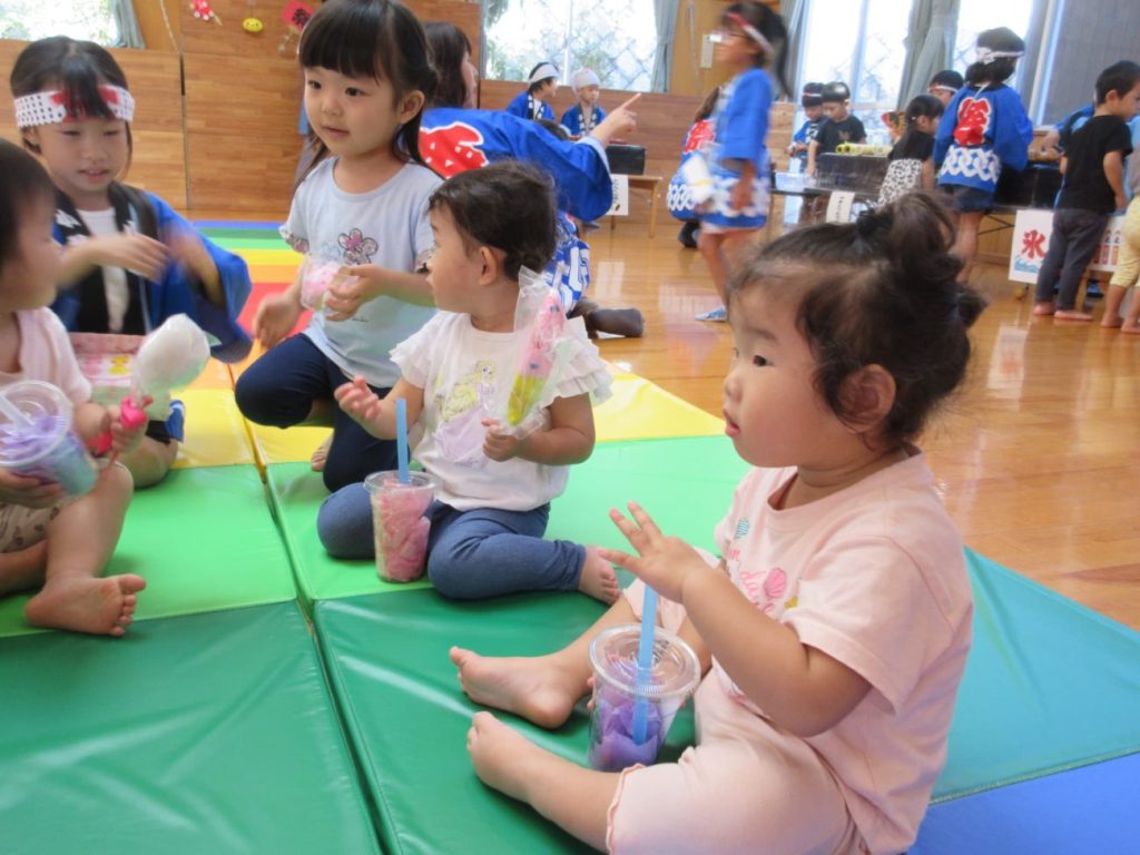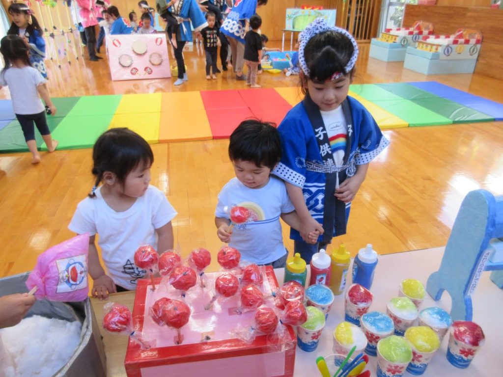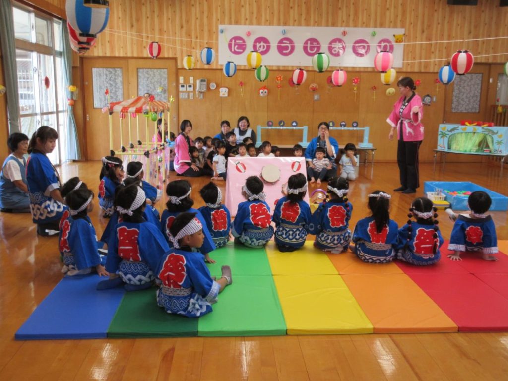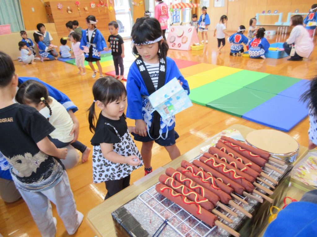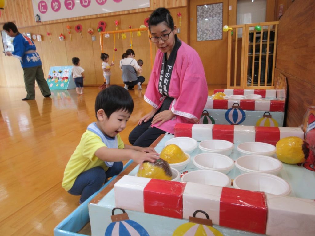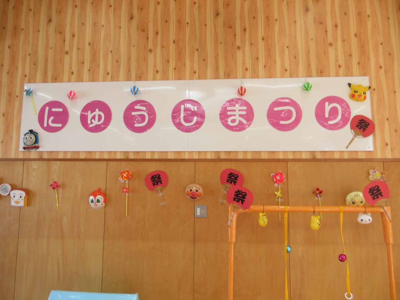 地域のおまつりに触れたり、『にゅうじまつり』を通して、地域の方や本園以外の子どもたちと関わるよい機会となり、おまつりの遊びを楽しむだけでなく、いろいろな刺激を受けて成長がみられたように感じます。今後も、いろいろな経験ができるようにしていけたらと思います。