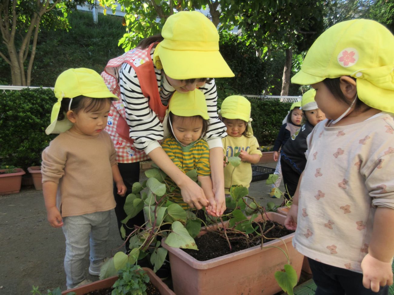 子どもたちは、お芋ほりや焼き芋を通して、季節の食べ物の匂いや味に触れ、自然を感じることができました。お友達と協力してお芋を引っ張ったり、自分の力でお芋を抜いたりと子どもの成長がたくさん見られました。これからも季節の自然物に触れる遊びや行事を行い、子どもたちの成長を見守っていきたいと思います。一つひとつの経験が子どもたちの成長につながることを願っています。