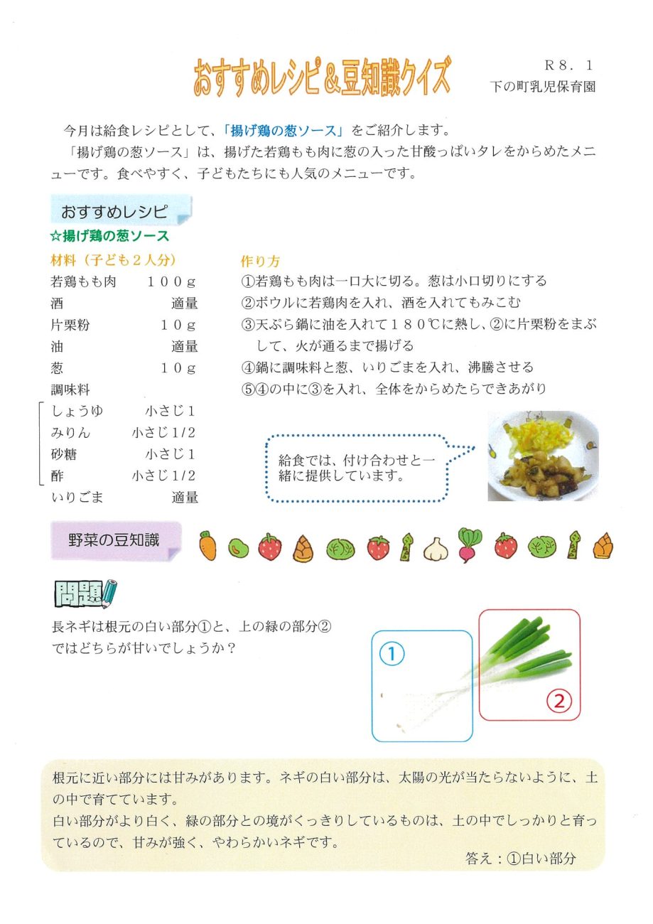 令和8年1月 おすすめレシピ&豆知識クイズ