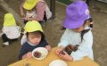 子どもたちは、色づいた葉っぱやまつぼっくりを手にしながら自分の袋に詰め込んだり、ままごと遊びをしたりと先生や友達と触れ合いながら秋の自然物で楽しく遊んでいます。日頃のかかわりの中で、小さいお友達のお世話をすることも学んでいるようです。やさしく自然物を渡してあげる様子がみられ、見ていてほほえましく自然とこちらも笑みがこぼれます。
