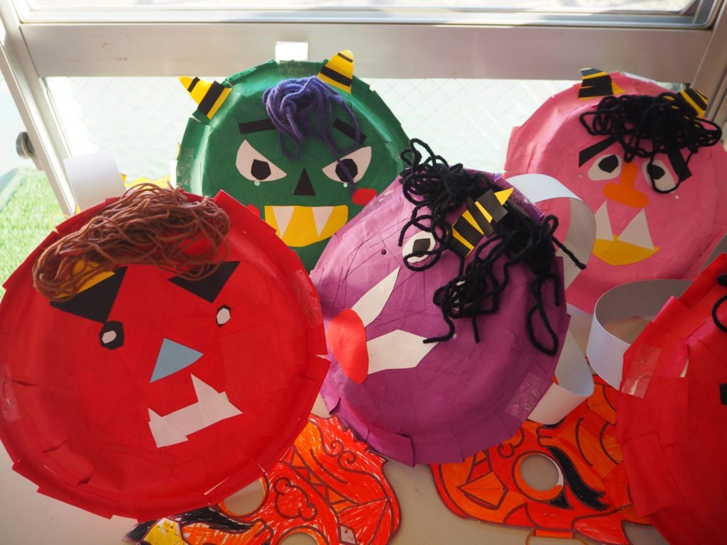 お家に持って帰ったお面を一緒に見たり、行事での思い出をお話ししたりしながら、ご家族でも季節の行事をお楽しみくださいね。