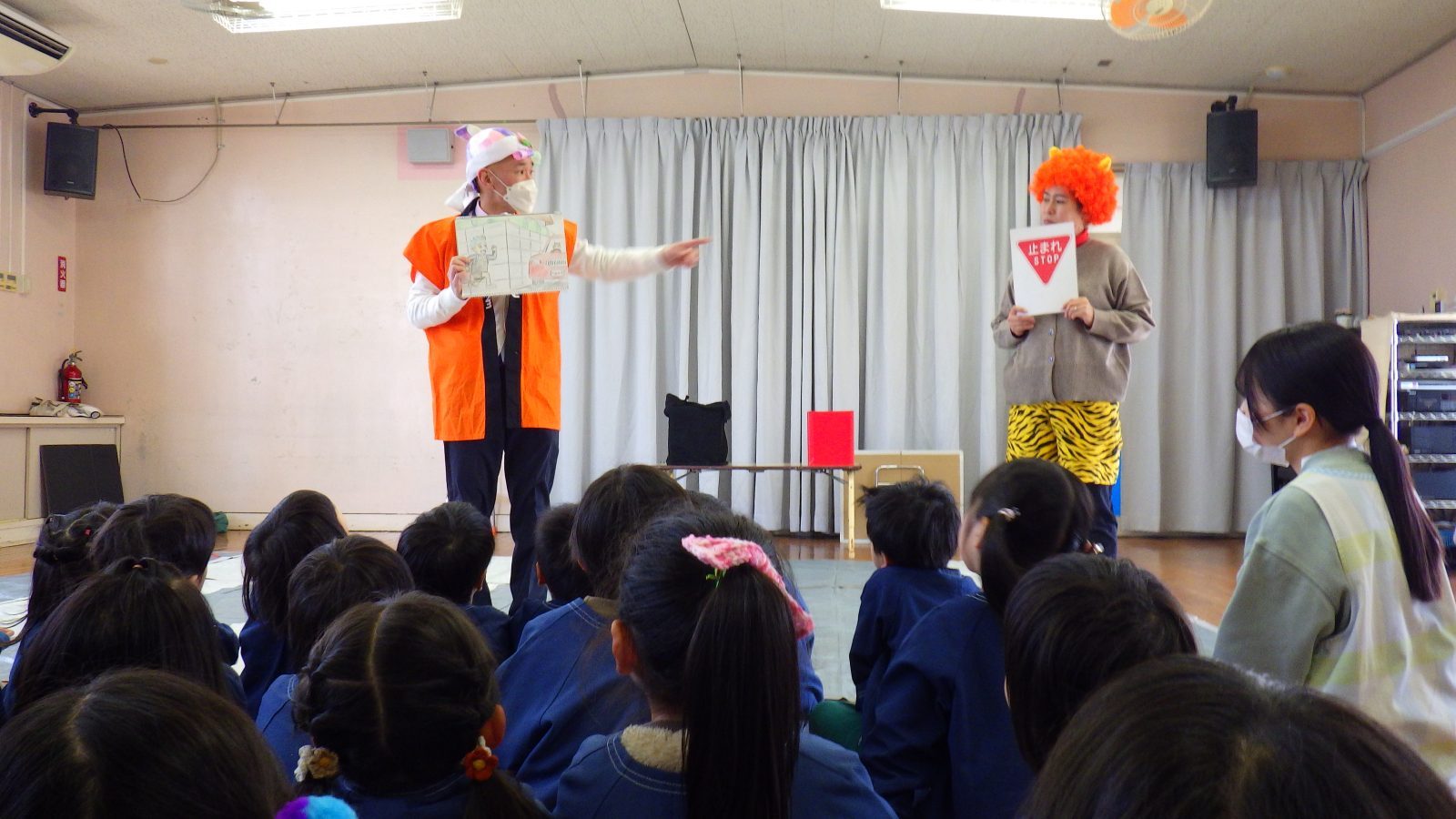 桃太郎さんと鬼ちゃんと交通安全教室