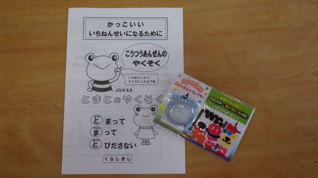 そして、最後はもうすぐ小学生になるゆり組さんに桃太郎さんと鬼ちゃんからお話がありました。プレゼントをもらい、かっこいい小学生になるために!交通ルールを守る約束をしました。